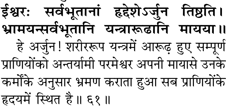 इसीलिए गीता के इस विशेष संस्करण में केनोपनिषद (1/4-8) के इन मंत्रो को संकलित किया गया है जिससे यह सिद्ध होता है कि परमात्मा बस शक्ति देता है और इसलिए जीव के पास मुक्त इच्छा है –