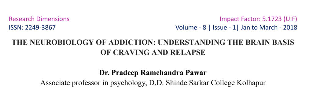 1. Pawar (2018) के शोध “Neurobiology of Addiction” में बताया गया है कि किस प्रकार मस्तिष्क के mesolimbic pathway में बदलाव addiction की निरंतरता के लिए ज़िम्मेदार होते हैं। यह शोध एम्स (AIIMS) जैसे संस्थान में पढ़ाया जाता है।